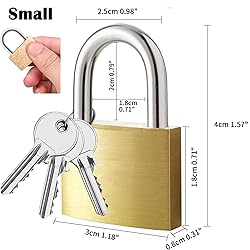 【4 Lock & 12 Keys】--The padlocks set include 4 locks and 12 keys, each pad lock with 3 keys, keys are open style, One key can be used to open all locks from the same set. 【High Security】--Durable solid brass pad locks’ body and lock core have strong corrosion resistance, not easy to rust, long service life. 【High Quality Brass】-- Locker lock with keys' material hardness is high with cutting resistance, compression resistance, small interchangeability. 【Wide use】--Padlocks with same keys can use for both indoor and outdoor. lock with key for gym locker, small locks with keys are suitable for shed, gates, luggage, lockers, fence and travel suitcase. 【Easy to Carry】--The gym locker lock is small size, light and easy to carry, the lock body is firm. Lock and key bring convenience to the owner. An Ideal gift to your family, friends, classmates, etc.