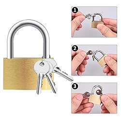 - The padlocks set include 4 locks and 12 keys, each pad lock with 3 keys, keys are open style. Durable solid brass lock body and lock core have strong corrosion resistance, not easy to rust, long service life. locker lock with keys' material hardness is high with cutting resistance, interchangeability. padlocks with keys can use for both indoor and outdoor. lock with key for gym locker, small locks with keys are suitable for backpacks, briefcases, tackle boxes, lockers and storage locks.