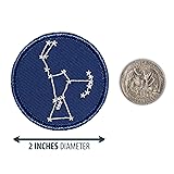 2-inch diameter round embroidered patch Perfect for scout troops, accessorizing, or collecting! Traditional patch style with twill background and merrow border Multiple patch backings to choose from! Select sew-on, hook-fastener, hook & loop fastener, or peel & stick adhesive. See details and application instructions in product description below. Orion Constellation patch