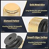 - Features: 1.Our knurled drawer knobs are individually bagged, each with two different types of mounting screws for convenient installation. 2.The colour-blocking and knurled texture design of the drawer knobs deliver a gorgeous and fashionable visual impact. 3.You can have a luxurious look to your house in daily life within your adequate budget. 4.Constructed of high-hardness solid aluminium alloy, our knurled drawer knobs is resistant to corrosion without rusting. 5.The diamond pattern surface has been treated with elaborate forging and polishing that provide a comfortable grip without slipping. 6.Our knurled cabinet knobs are compatible with Boho, European, Minimalist, Modern or Mid-century furniture. 7.These premium hardware knobs are an affordable option if you crave an upgrade or replacement for knobs in your kitchen cabinets, cupboards, wardrobe, bathroom vanity, or dresser drawers. Specification: Color: Black & Gold Material: Aluminium Alloy Regular Screws : M4 * 1" / 25mm Breakaway Truss Head Screws: M4 * 1-3/4" / 45mm Package Included: 12 x Knurled Cabinet Pulls 12 x Regular Screws 12 x Breakaway Truss Head Screws Warm Tips: 1.We offer screws in two different lengths for thicknesses: 13 - 40mm / 1/2" - 1-9/16" 2.As the size is measured by hand, please allow 1-2mm difference between the actual size and the hand measured size. 3.The pictures of the product are as close to the real thing as possible, but the colors are slightly different due to equipment, lighting and display.