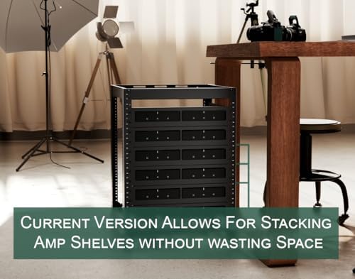 - NEW DESIGN: allows you to stack the amps sheleves or any other shelves on top of each other without wasting space. New installation hole placement.