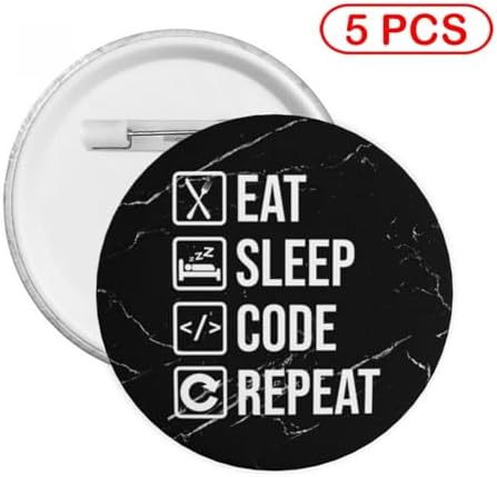 Funny Computer Programmer Saying Eat Sleep Code Button Pins Buttons Badges Pins for Women Men Round Badges Brooch Pin Party Pins for Clothes,Backpack,Hat and Gift 1 PCS