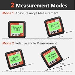 Versatile and Accurate: The measurement range of this electronic inclinometer is 4x90°, with a display resolution of 0.01°, an accuracy of ±0.2°, and a repeatability of 0.05°, has a wide range of applications. Portable and Practical: This digital angle protractor has a portable size, easy to use with other measuring tools, expand the measurement range. Battery (not included) powered, convenient and practical. Multiple Functions: This digital angle supports relative and absolute measurement conversion, angle and slope conversion, with data locking function, making it convenient to observe measurement data. Multifunctional Use: The digital level box is suitable for angle cutting of wood processing, accurate control of tire assembly angle, locating of machine tool working angle and boom rotation angle. Magnetic Digital Level Box: The digital level inclinometer features a magnetic bottom that you can attach to the of the measured workpiece, providing stable and measurement.
