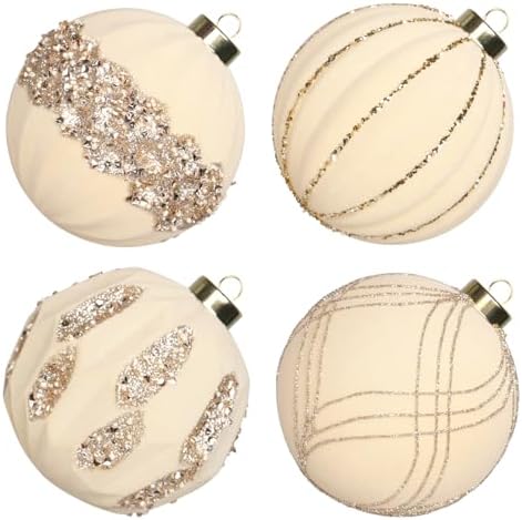 SY Super Bang 4 Inch Large Velvet Cream White Christmas Ornaments, Flocked Christmas Tree Hanging Ball Decorations Assortment, for Holiday Birthday Wedding Xmas Party Decor, 100MM
