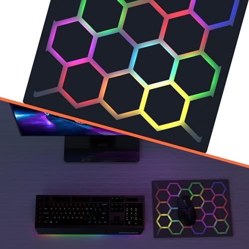 - 【Hexagonal glowing pattern】 with cool lighting effects: 21 independently controlled lighting zones allow each hexagon to have its own color, making your mouse pad anything but monotonous