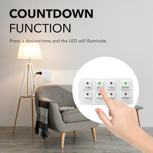 - ✓ SIMPLE AND EASY TO USE: 6 Countdown Time buttons (15min, 30min, 1hour, 2hour, 4hour and 6hour), 1 ON/OFF Override button, 1 Repeat button.