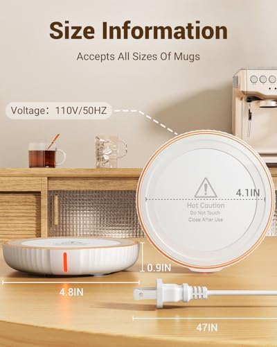 - Large Cup Warmer: The Portable candle warmer has a diameter of 4.8 in and a heating surface of 3.5 in, fitting 90% candles and cups. The 47 inch cord meeting the needs of most usage scenarios