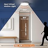𝐔pgrade 𝐌otion 𝐒ensor 𝐂eiling 𝐋ight: Equipped with a 360 degree microwave sensor and light sensor. Our sensor light offers a wider detection angle, range and higher sensitivity. The light will automatically turn on when you move within a range of 3 to 20 feet from the light. (Recommend installing at least 1.5m away from the switch and Wi-Fi routers.) 𝐍𝐎𝐓𝐄: 𝐇ardwired 𝐂eiling 𝐋ight, 𝐍ot 𝐁attery 𝐏owered. 𝐑emote 𝐌otion 𝐂eiling 𝐋ight: Matane motion sensor light comes with a remote control that allows you to personalize the detection range (3/13/20 feet), light sensor (15 lux/50 lux/disable), and lighting duration (5 seconds/30 seconds/60 seconds/300 seconds). You can also disable the motion sensor function and set the light to stay on. 𝟑 𝐌odes 𝐀vailable: Choose from AUTO mode (motion and light sensor) for lights that only work when motion is detected in the dark. G mode (Motion Sensor Mode Only) ensures the light comes on whenever motion is detected. For permanent lighting, select ON mode. 𝟑𝐂𝐂𝐓 𝐃immable 𝐌otion 𝐋ight: Experience customizable lighting with our versatile wired motion sensor light. Choose from 3 different color temperatures (3000k warm white, 4000k natural white, 5000k cool white). 𝐀djust brightness 𝟏𝟎% to 𝟏𝟎𝟎% using the remote control to suit your needs. Whether you want a cozy warm white glow or a bright cool white light, our ceiling light has got you covered. 𝐄nergy 𝐒aving: The 24W motion and light sensors light provides 2400 lumens, equivalent to a 240W incandescent bulb. With a lifespan of over 30,000 hours, It saves an impressive 85% of energy and lower your electricity bills. 𝐇ardwired And 𝐄asy 𝐈nstallation: Hardwired LED flush mount ceiling light compatible with most junction boxes, can be mounted on ceilings and walls, The package includes detailed installation instructions and product accessories. It's perfect for closets, stairs, pantry, shed, hallway, porch, garage, hallway and etc.
