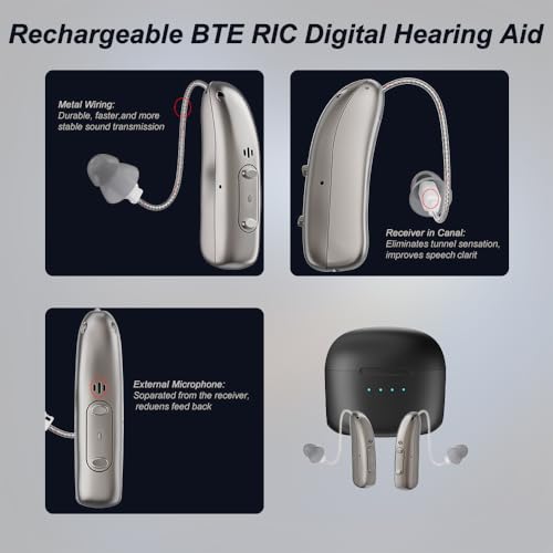 Rechargeable Hearing Aids for Seniors App Control with 4 Sound Modes BTE Hearing Aids,RIC Hearing Aids Noise Cancelling Elderly Assistance Listening