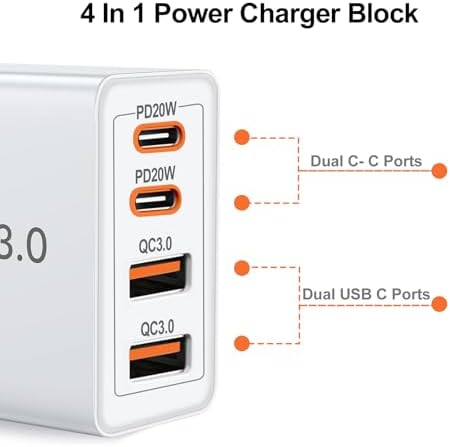 2-Pack 40W Fast Charger,2 Pack USB-C and 2 Pack Type C-C Fast Charging Cable,4-Port PD Power Adapter for iPhone 17/Pro/Pro Max/17 Air/ 16 Series/15 Series,iPad,AirPods,Watch,Samsung and More