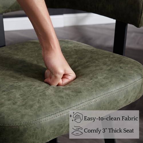 LukeAlon PU Leather Bar Stools Set of 2, 25.5" Counter Height Bar Stool with Padded Open Backrest Modern Upholstered Low Barstools with Metal Legs Simple Bar Chairs for Kitchen Island Home Bar, Green