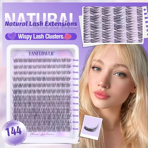 Natural Lash Clusters Kit Wispy Lash Extension Kit Waterproof Lash Clusters C Curved Cluster Eyelash Extensions Kit 144pcs Individual Lashes 10-16mm Eyelash Extension Kit by Lanflower