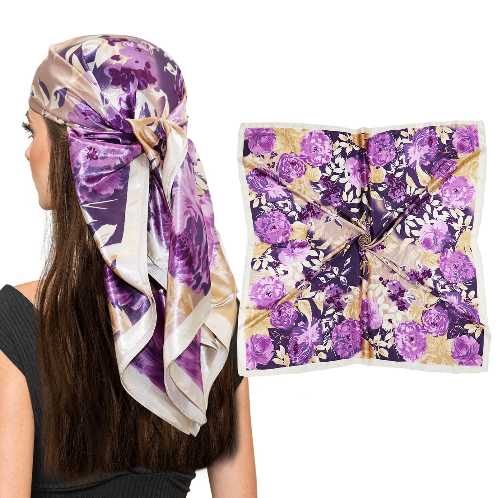 vimate Head Scarf for Women-35 Square Silk Feeling Satin Scarf for Hair Wrapping and Sleeping at Night.