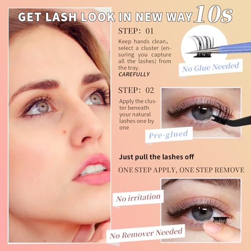 - 【Advantage】Our Self Adhesive Lash Clusters range aims to simplify the application process for fake or false eyelashes.Just Press-On and Remove One Step to give them a better life.This fake eyelashes is Suitable for all adult women,no matter how old she is,especially beginners friendly