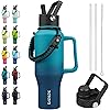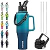 BJPKPK Insulated Water Bottles with Straw Lid, 35oz Metal Water Bottle with 2 lids & Paracord Strap, Double Wall Stainless Steel Tumbler with Handle, Reusable Cups, Mugs, Thermo, Sea