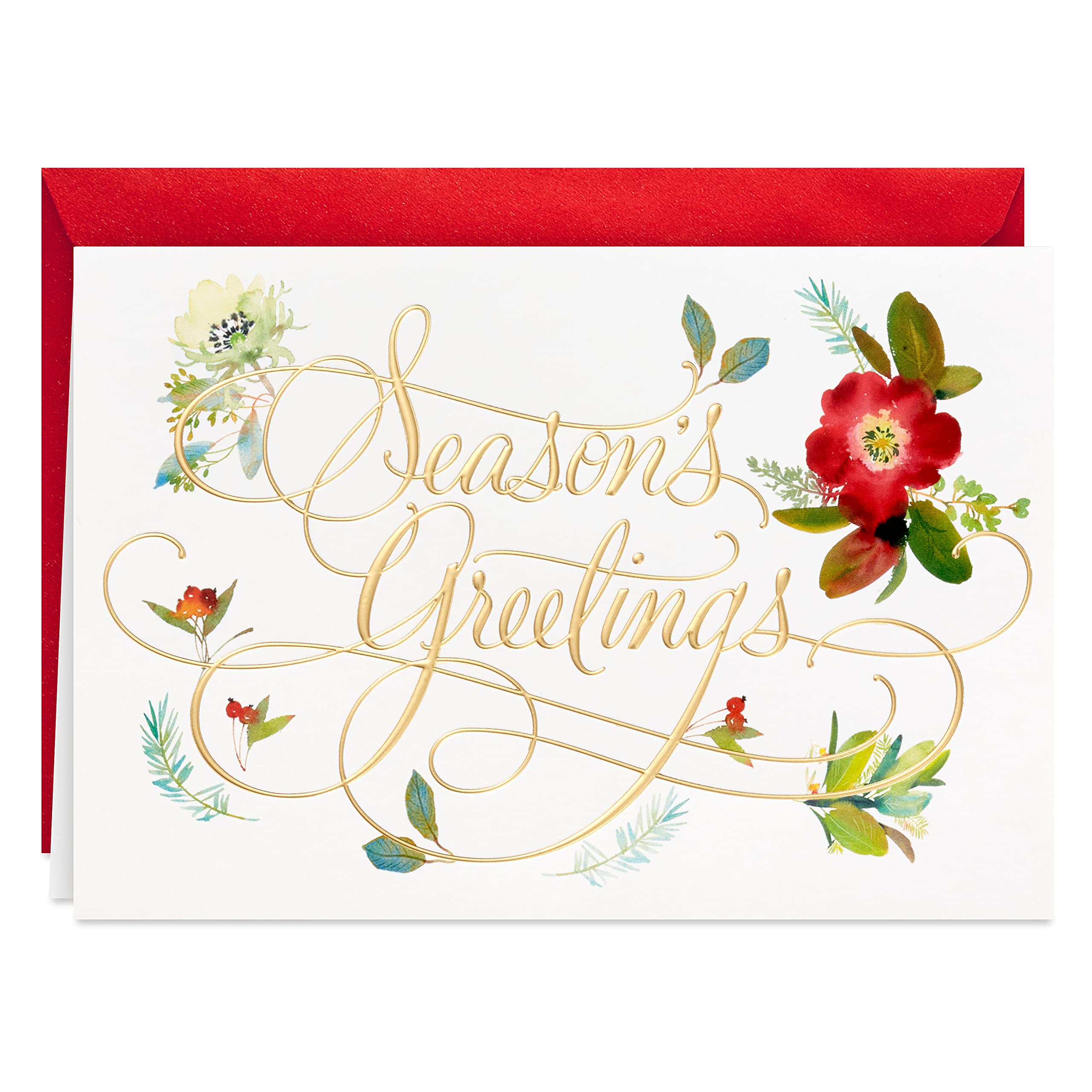 - Christmas greeting card measures approximately 5" x 7.2" and comes with coordinating envelope