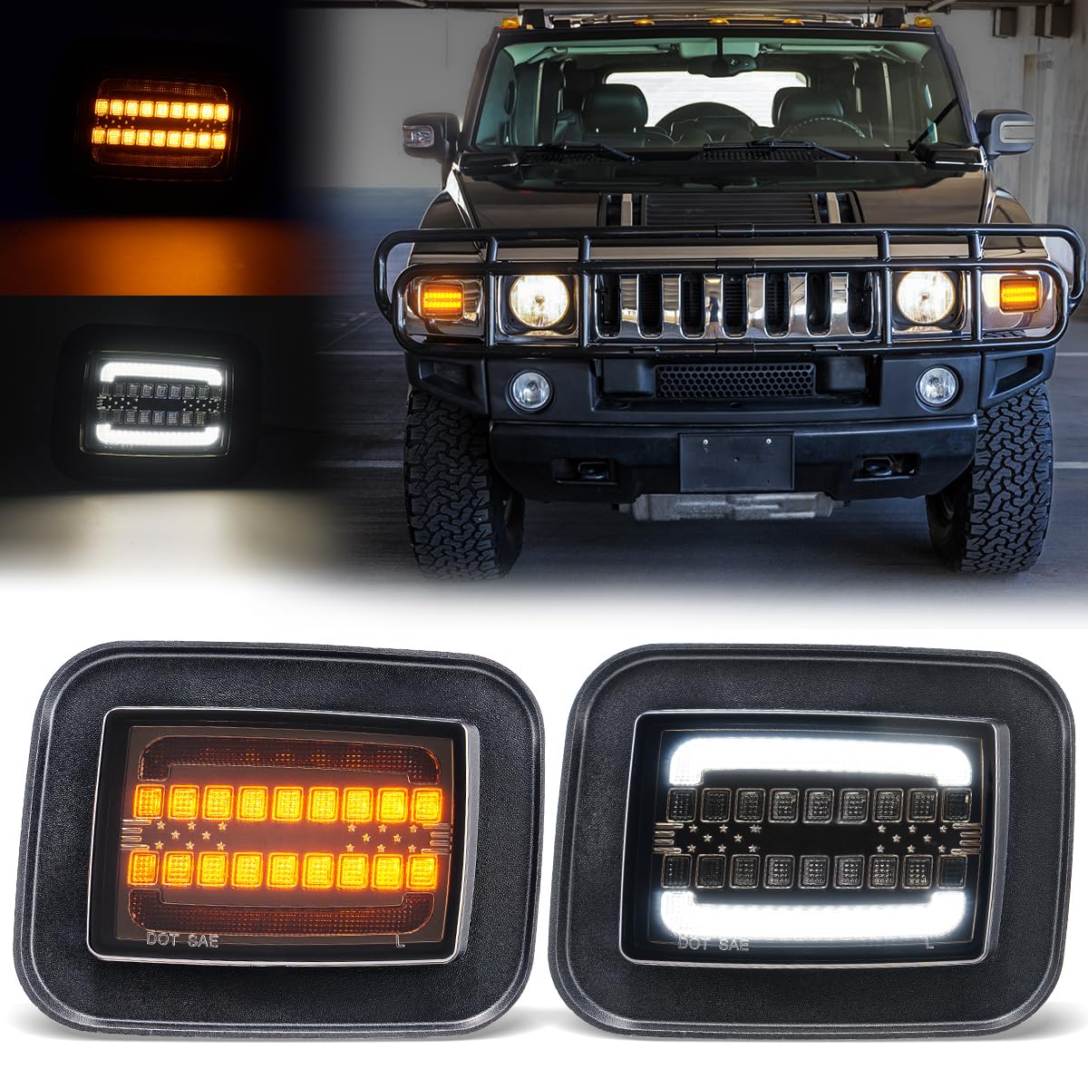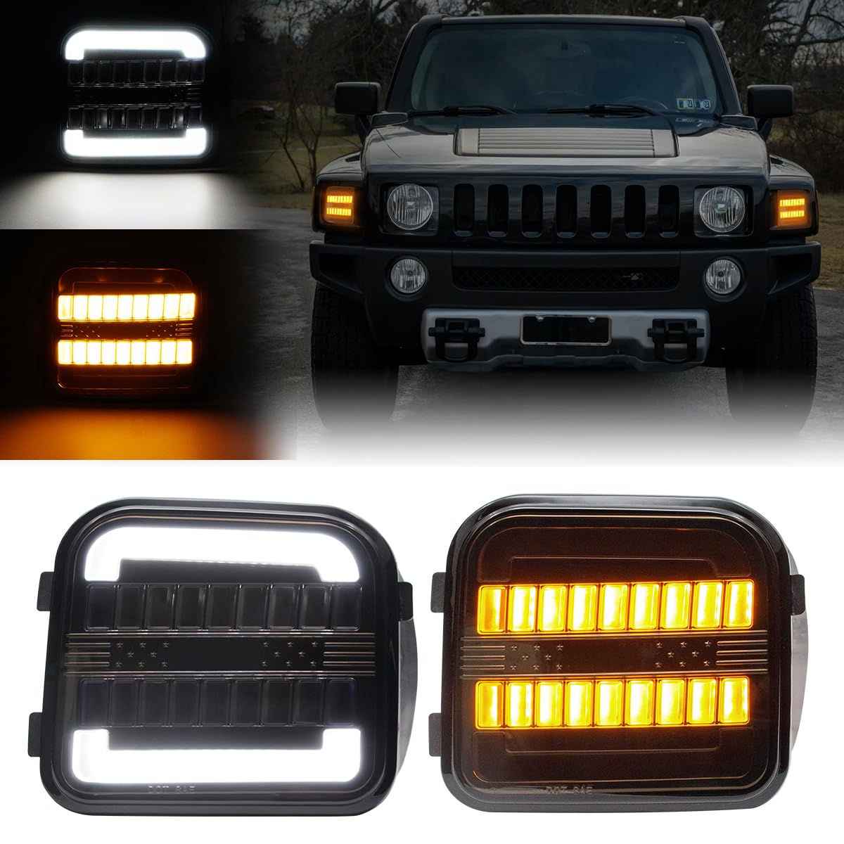 Front Turn Signal Corner Marker Lights Compatible with H2 2003-2009 Yellow Dynmaic Sequential Blink LED as Turn Signal Lights,White as Daytime Running Lights (Clear Lens)