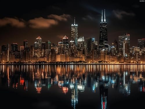 QAZWSX DIY 5D Diamond Art Kits Painting for Adults Chicago Skyline Nightscape City 30x40cm