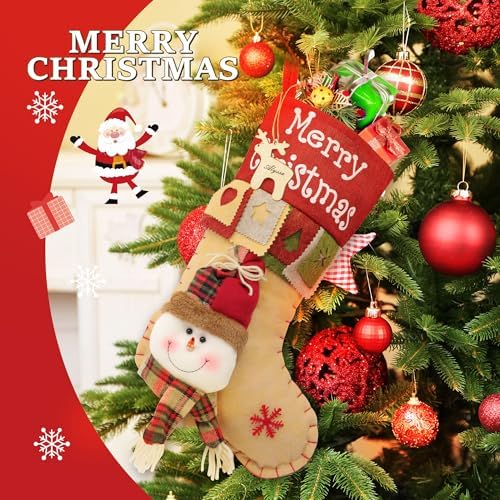 Christmas Stockings - 18.5 Inch Large Christmas Stocking - 3D Snowman Xmas Stockings with Name Tag, Great for Family Decoration Gifts, Fireplace, Christmas Tree and Stairs