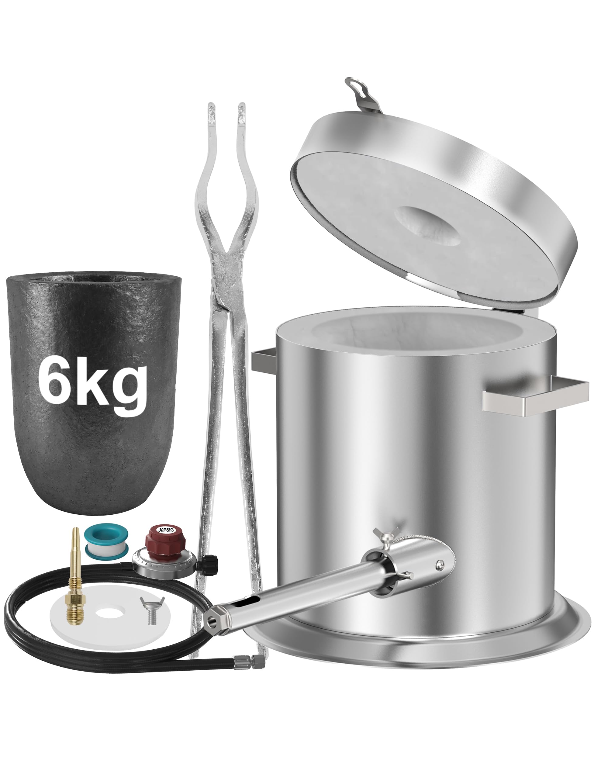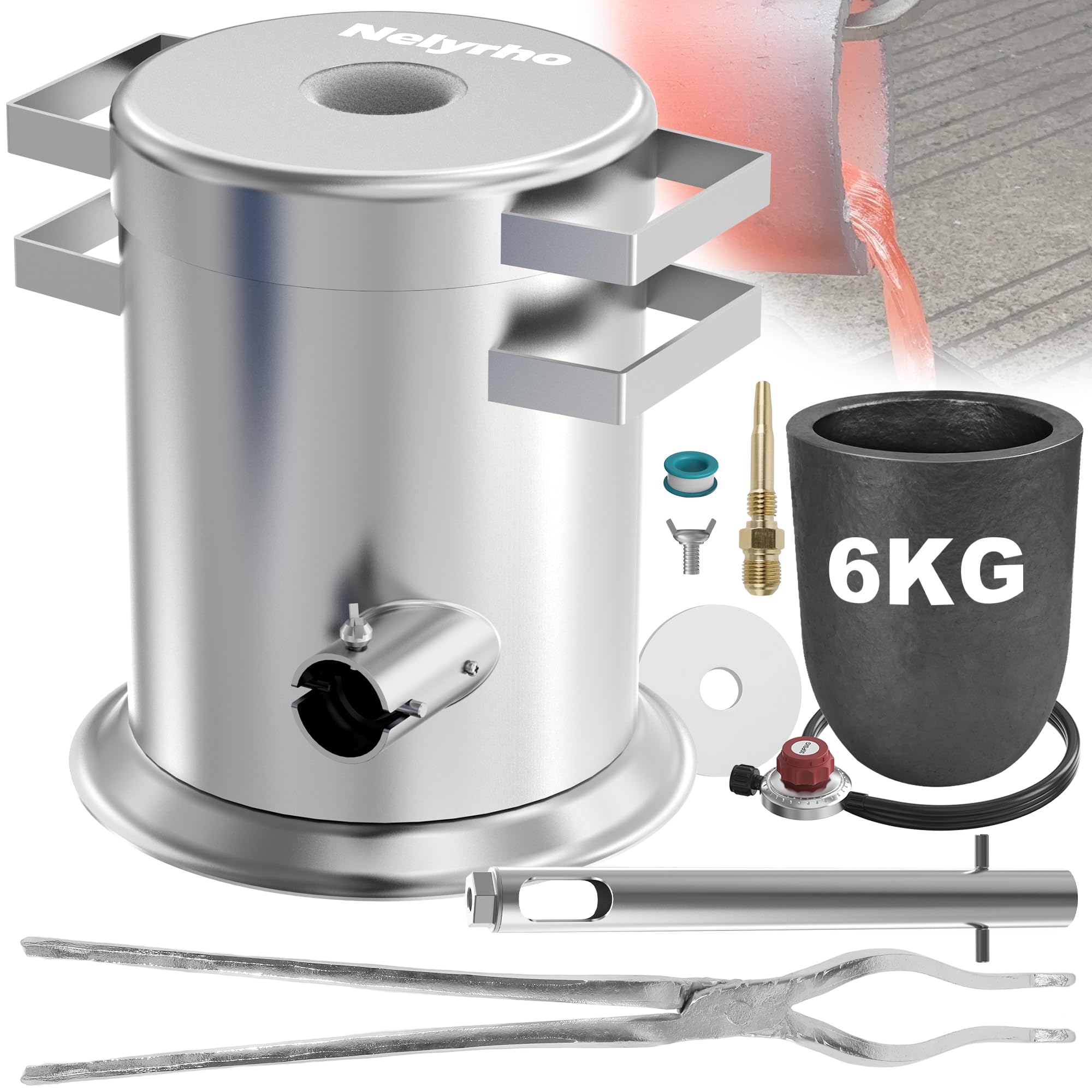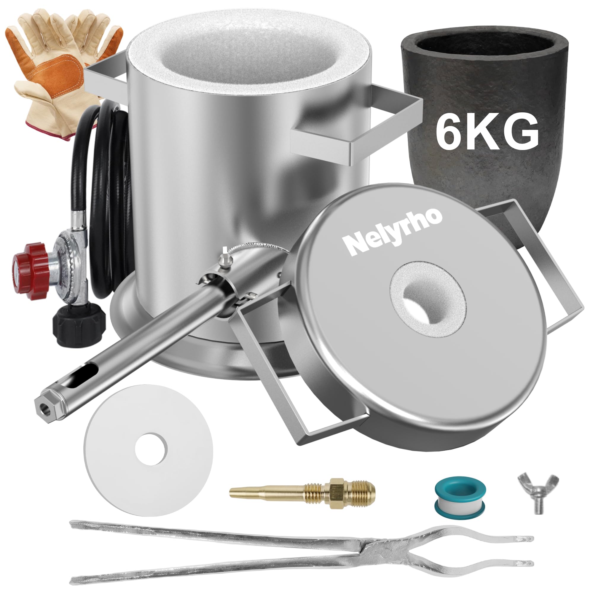 Nelyrho 6KG Melting Furnace Kit, Stainless Steel Foundry with Crucible Tongs, Ingot Mold, Goggles, Gloves, Carry Bag, Ideal for Smelting Silver, Copper, and Aluminum, Metal Recycling Casting Tool