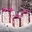 Elegear 11.8" Christmas Lighted Gift Boxes, Christmas Decorations Indoor Extra Large 11 Modes & Timer Function Set of 3 Plug-in Flodable Light Up Present Boxes with 117 LEDs Christmas Decor for Xmas