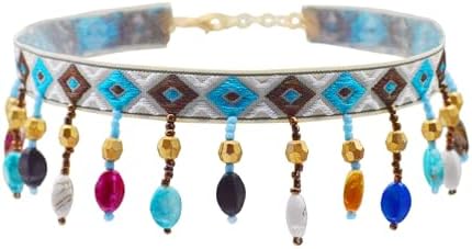 MOMOCAT 14K Gold Plated Boho Choker Green Teal Imitating Turquoise Bead Tassel Chokers Necklace Bohemian Chocker Gothic Chockers Layered Hippie Necklaces 90s Chokers Country Western