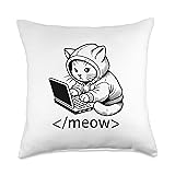 Kitten Developer Meow Code Block Laptop Cat Hacker Funny Throw Pillow
