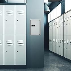 40 POSITIONS: Our key cabinet wall mount has a large storage space with 40 positions for hanging keys, and is designed rationally, making it easy to retrieve keys. Measures 12.1" x 8.1" x 2.6", the key box is medium sized and suitable for various occasions CONVENIENT COMBINATION LOCK:The key cabinet with combination lock is equipped with a three-digit combination lock, offering over one thousand possible combinations, which ensures easy and secure access HEAVY DUTY CONSTRUCTION: Crafted from heavy-duty steel sheets and coated with eco-friendly paint, this key box with code is built to last. The added phosphating rust-proof technology enhances durability, providing long-term key storage protection WALL MOUNT DESIGN: Our white key box is wall mountable, keeping your keys readily accessible whenever needed. Ideal for a wide range of settings, including homes, offices, warehouses, car rentals, and apartment complexes ALL ACCESSORIES INCLUDED: Included with your key cabinet lock box purchase are forty-two colorful key tags, number stickers, and three screws with wall anchors for hassle-free setup. The pre-drilled mounting holes on the keybox simplify the setup process