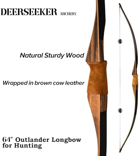 - One of the Best From Our Longbow Line- The Deerseeker archery Outlander 64" longbow is an elegant traditional bow, it comes with a slight reflexdeflex design. The lamination tech is spread on the bow, the Tapered limbs support durability, and quick arrow flight. The smooth draw and performance are focused on this one-piece long bow, pretty good for outdoor hunting, and 3D target shooting.