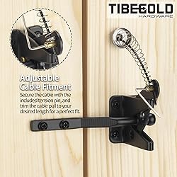 Durable Self Locking Gate Latch: TIBEGOLD gate latch, crafted from high-quality iron and protected by a black powder coating and a galvanized layer, offers exceptional resistance to wear, corrosion, and rust. Its stainless steel spring cable pull is engineered for longevity, ensuring the lock's strength and reliability endure through countless openings and closings. This makes it the ideal choice for outdoor use Upgraded Self-Locking Design: The door lock is engineered with an enhanced self-locking mechanism, combining a robust structure with a clever cable release system. A simple push is all it takes for the gate to close securely, while a light pull opens it with smooth. The cable's adjustability allows for tailor-made lengths, ensuring an exact fit for any gate. And the latch is equipped with reinforced 1.26" (3 cm) extended screws, providing a solid and dependable mount that offers a secure and reliable solution for outdoor gates Self-Closing Latch Safety Protection: The gate latch, with its gravity locking mechanism, is an innovative solution that automatically secures your fence gate, preventing unauthorized entry and safeguarding your children and pets. This convenient feature leverages the power of gravity to ensure your gate remains firmly shut, enhancing the security of your outdoor space without the need for complex mechanisms Easy to Install & Padlockable: The gate hardware kit includes installation instructions and all necessary screws. Before installing the gate lock, please carefully read the manual. This lock is suitable for both left-hand and right-hand usage. For added security, it can be used with a standard padlock ( padlock not included) Widely Used: TIBEGOLD gate latch provides sturdy security protection for wood or metal gates that swing inward or outward, making it ideal for wooden gates, wooden fences, vinyl gates, and more. This latch ensures security for gardens, backyards, orchards, vegetable gardens, sheds, terraces, as well as for baby gates, pool doors, privacy fences, pet houses, and many other outdoor settings
