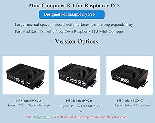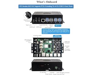 Pi5 Module BOX-B: Supports PCIe Extending to 4-CH USB3.2 Gen1 ports. Multi-functional All-in-one Mini-Computer Kit Compatible with Raspberry Pi 5 (NOT included), wtih Aluminum Alloy Case, PCIe to 4-CH USB 3.2 Gen1 Adapter, Dual 4K Outputs Micro HDMI to HDMI Multifunctional Adapter( 10 Items) Larger Space, strong Expandability, Larger internal space, supports connecting to various HATs such as PoE HAT, etc. also with space left for cable management Comes with Pi5 HDMI and Type-C adapter, adapting Type-C, dual HDMI Female Ports, and screw terminal For Easier Connection with peripherals, Supports Two Power Supply connection methods from the front side or the back side Reserved Airflow Vents for efficient heat dissipation, supports installing cooling fan for better heat dissipation Provide Online Development Resources /User Manual: bit.ly/3zRBHPA