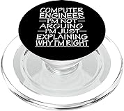Funny computer engineer design saying and quote for men or women: computer engineer i'm not arguing i'm just explaining why i'm right. Funny computer engineer design in christmas or birthday.computer engineering design. MagSafe base attaches the PopGrip to your MagSafe-compatible case (not included). Printed top is swappable with other compatible PopGrip models. Just press flat, turn 90 degrees until you hear a click and remove to swap. Compatible with iPhone 12, iPhone 13, and iPhone 14 models. Works best with smooth, hard MagSafe compatible case. Wirelessly charge your iPhone by sliding off the magnetic PopGrip and setting your iPhone on a wireless charger.
