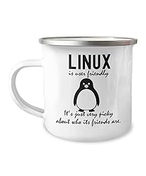 AMISK CREATIVES Funny Linux Enamel Camping Mug Linux Is User Friendly Birthday Xmas Geek Office Gift For Women Men