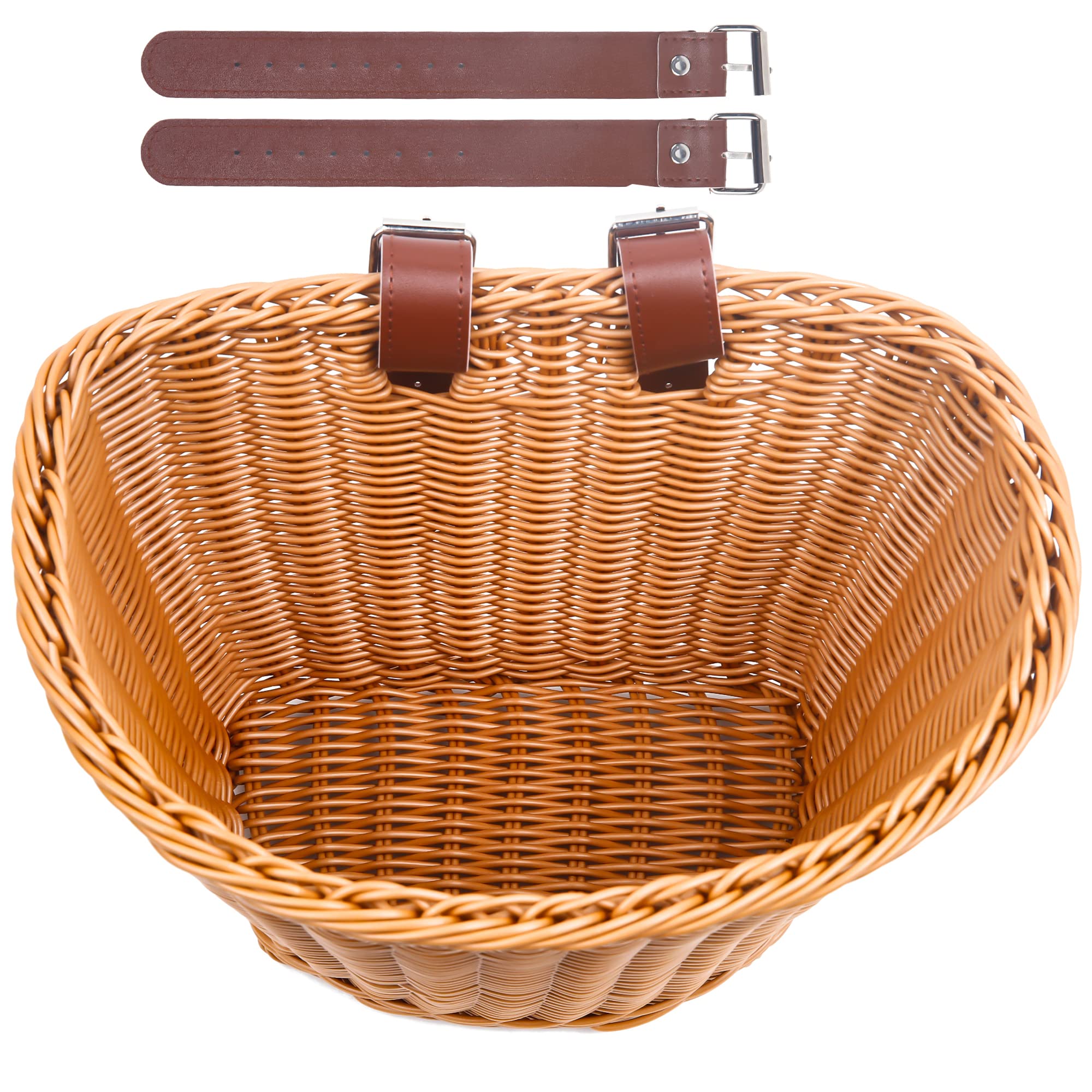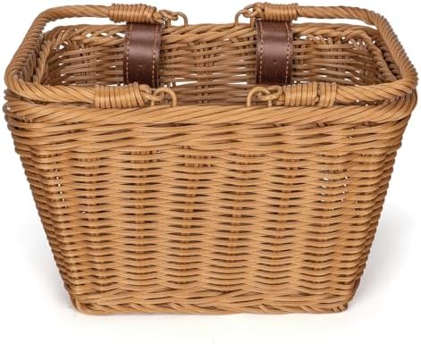 - 【Material】: The hand-woven design adds a touch of personality to any bike. Each bicycle basket is expertly handwoven from high-fidelity plastic wicker, as it doesn’t crack or splinter. The Front bike basket comes in beige, brown, pink and rainbow, making it easy to match with any type of bike.