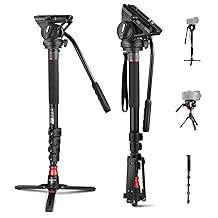 - 【3-in-1 Tripod Stand】COMAN professional monopod tripod with fluid head provides 3 options for use: 1) Fixed camera monopod with adjustable feet, 2) Portable monopod stand, 3) Low angle camera tripod with base. Monopod for camera support feet with One-touch vertical locking knob, can hold steady on uneven ground, which isconvenient and fast. The tripod feet alone can also create a desktop tripod stand