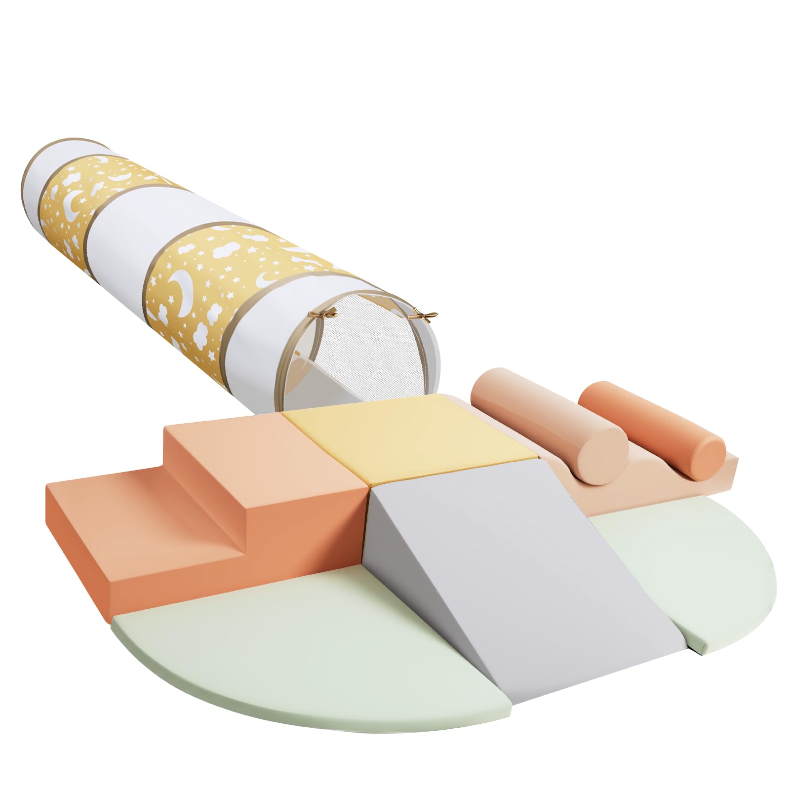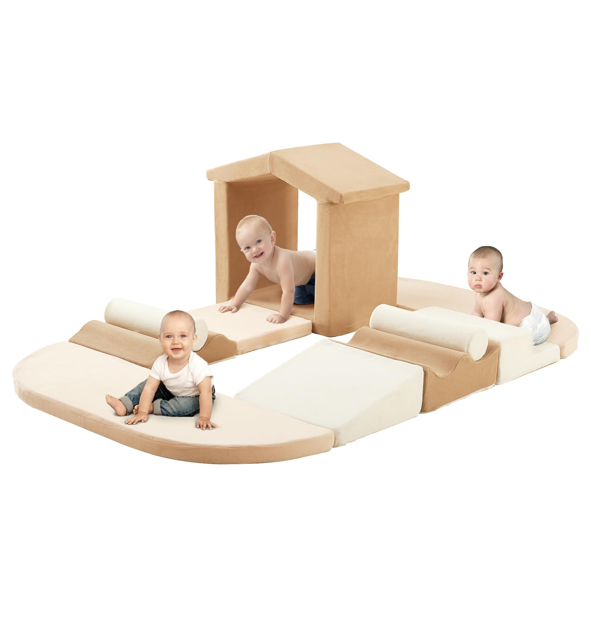 - ❤Complete 5-Piece Set❤ The playset Includes 1 stair climber, 1 ball pit (balls not included), 1 triangle wedge, and 1 versatile cube that splits into two for creative play.It suits for kids or toddlers aged 1-3 years old to safely climb with different levels of difficulty