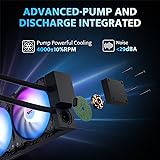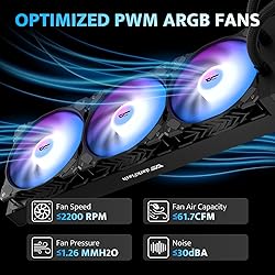 [Stylish Aesthetics & ARGB Sync Fans] The pump head features RGB effects and darkFlash logos, adding a unique views to your chassis. The ARGB fans sync with most addressable RGB motherboards, including Aura Mystic Light and Polychrome Sync. [Optimized PWM] Includes 3 PWM ARGB fans with speeds up to 1800RPM±10% and noise levels ≤30DBA. The Improved PWM design enhances airflow and air pressure, automatically adjusting fan speed based on system temperature for the best balance of cooling and quietness. [Advanced Pump] Innovatively by isolating the water pump from the cold head, we improve heat dissipation and provide increased installation flexibility. With a maximum speed of 4,000 RPM, this robust pump guarantees efficient and quiet coolant circulation. [Efficient Heat Dissipation] High-density cooling radiator+ high polymer rubber hose protective water pipe to create low resistance, high cooling, Abrasion and long-life integrated aio cooler. Also 450mm long pipe, making it compatible with various pc case layouts and easy to install. [Compatibility] Supports CPU cooling slots for Intel LGA 1200/115X/1700 and AMD: AM4/AM5/AM2/AM2+/AM3/AM3+/FM1/FM2. Includes the necessary mounting plates or fasteners for dual CPU platforms. Follow the installation instructions for setup. [After-Sales Guarantee] Experience peace of mind with the darkFlash brand and our exceptional 3-years assurance for aio cooler. We prioritize customer satisfaction and provide top-notch product quality to ensure an professional user experience.