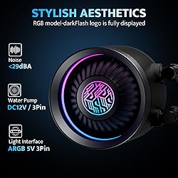- darkFlash DNA360A AIO CPU Liquid Cooler, High-Performance Pump, ARGB Sync, PWM Fans, with Customizable darkFlash Logo Display, Compatible with Intel 1700/1200/115X, AMD AM4/AM5 (Black, 360mm AIO)