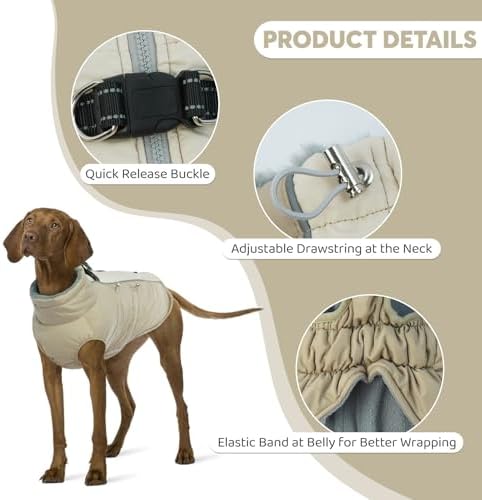• Easy to Wear: This waterproof dog jacket is equipped with a smooth zipper on the back for quick and hassle-free dressing, while the self-locking design keeps it securely in place. The dog coats for winter with adjustable drawstrings at the neck and back ensure a snug fit, and hind leg straps prevent the coat from shifting during movement, keeping your dog warm and comfortable all day.