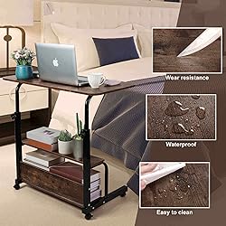 Adjustable Height Mobile Computer Desk for Small Space Rolling Writing with Wheels Corner Home Office Study Portable Desks Standing Desk Rolling Desk Mobile Laptop Table Size 31.5X15.7 Inch Brownish