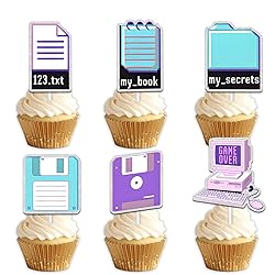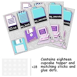 18pcs Glitter Workbook Computer Dessert Cupcake Topper Computer Intelligence Workbook Theme Men Women Happy Birthday Anniversary Party Decorations Supplies