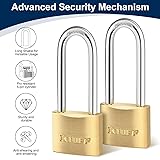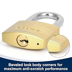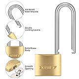 【SAFE MECHANISM】: Keyed alike padlock with solid brass body ,hardened steel long shackle and dual locking lever provides excellent pick and cut resistance, maximum corrosion protection under weather conditions. 【LONG SHACKLE 】: With its 2.5 inches extra long hardened shackle,you can run it through multiple things or across longer distance with no problem,and enjoy the much versatility and convenience the longer loop gives. 【KEYED ALIKE PADLOCK】:You can get 6 same keys working for both 2 padlocks,meaning you can always find one and each key works perfectly with both locks!No more fiddling for the right keys,no more catching or jamming so you don’t have to fidget with the locks to get them off or on! We can share both locks with up to six people. Or, more likely, we'll have extra keys so if we lose one or two or even more!!! 【VERSATILE APPLICATIONS】: The durable well made heavy duty brass padlock is designed to withstand elements and stand up to the weather and is intended for indoor and outdoor usage such as school gym or athletic lockers, cabinets,hasp storage units, fence gates, garden sheds,garage doors,backpacks, tool boxes,bike,moped, etc. About this item 【SAFE MECHANISM】: Keyed alike padlock with solid brass body ,hardened steel long shackle and dual locking lever provides excellent pick and cut resistance, maximum corrosion protection under weather conditions. 【QUALITY GUARANTEE】: We attach great importance to customer’s satisfaction and we provide no-hassle no condition refund guarantee for any quality issue!