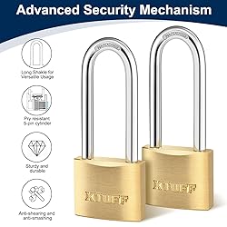 - XTUFF Solid Brass Padlock with 6 Same Keys, Keyed Alike Padlock with 1-9/16 inch wide Body, Locks with 2.5 Inch Extra Long Shackle for Indoor and Outdoor Usages such as Fence Gates,Garden Sheds, Garage doors,School Gym or Athletic Club Lockers, Hasp Storage Unit, Toolbox, Cabinets,Bike,Moped, 2 Pack