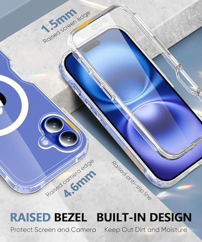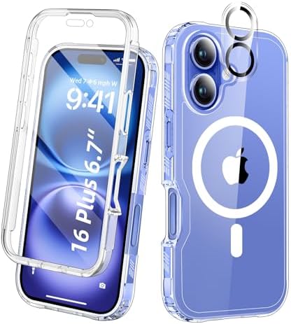 Compatible with iPhone 16 Plus Case Clear, Built-in Screen Protector, with Camera Lens Protector, [Compatible with MagSafe] Full Body Phone Case, Protective Cover for 16Plus 6.7" (Clear)