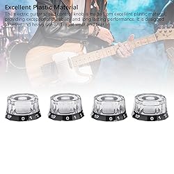 - 1. Excellent Plastic Material: The electric guitar speed control knob is made from excellent plastic material, providing exceptional durability and long lasting performance. It is designed to withstand heavy use and resist wear and tear. 2. Easy Installation: The guitar control knob is designed to fit a 6mm potentiometer mounting hole, making it compatible with most standard guitar potentiometers. It can be easily installed without the need for securing screws, simply push it onto the knob shaft for a quick and easy installation. 3. Good Compatibility: The electric guitar knob is suitable for a wide range of electric guitars and bass guitars, making it a versatile accessory for musicians looking to customize or upgrade their instruments. Its universal design and rugged construction make it a choice for enhancing the appearance and performance of your guitar. 4. Multifunctional: This guitar speed control volume tone knob is multifunctional and can be used for volume adjustment, intonation adjustment, speed control, etc., giving you convenient and accurate adjustment operating on your guitar. 5. Wide Application: This guitar volume tone control knob has a wide range of applications, can be used for daily practice, stage performances and music recordings, etc. It is great for replacing your damaged, dirty or old volume control knob with guitar parts. Spec: Item Type: Guitar Knob Material: Plastic Mounting Inner Hole Diameter: Approx. 6mm / 0.24in How to Use: Direct use. Package List: 4 x Guitar Knobs