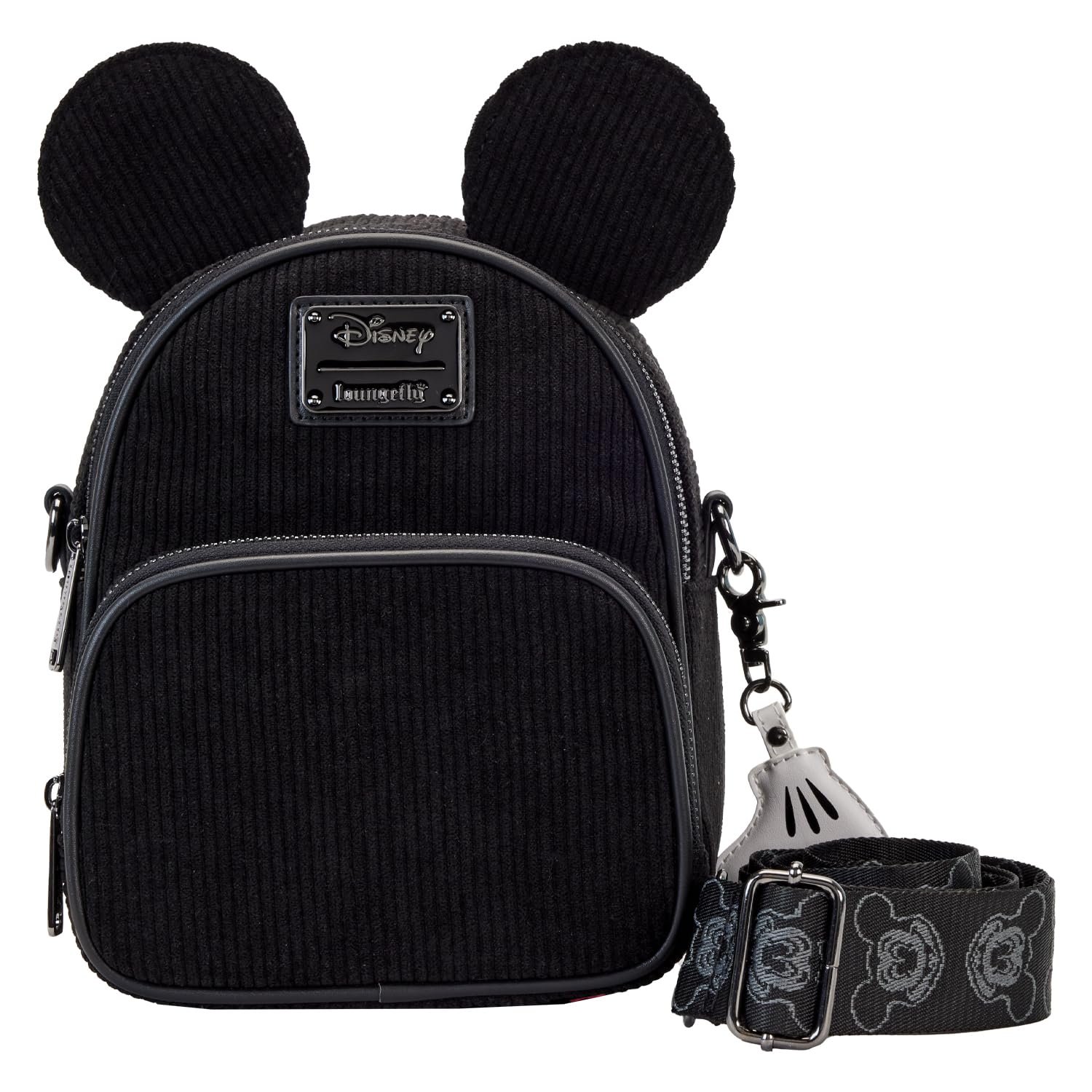 - Features: Nylon material, adjustable and detachable strap with a print of Mickey Mouse’s ears, detachable reversible coin purse, gold-colored metal hardware, printed, embroidered, and applique details with coordinating inside lining.
