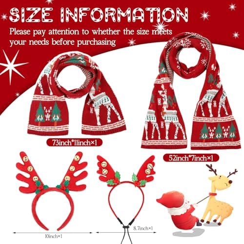 - A Size for Many Humans and Dogs: our Christmas accessories for dogs and humans are designed with many people and dogs in mind, the human scarf measures about 6.2 ft x 14.5 inches while the pet scarf is about 4.4 ft x 9.4 inches; There are also human and dog headbands that have enough width for a comfortable fit, they'll make a nice addition to your Christmas ensemble
