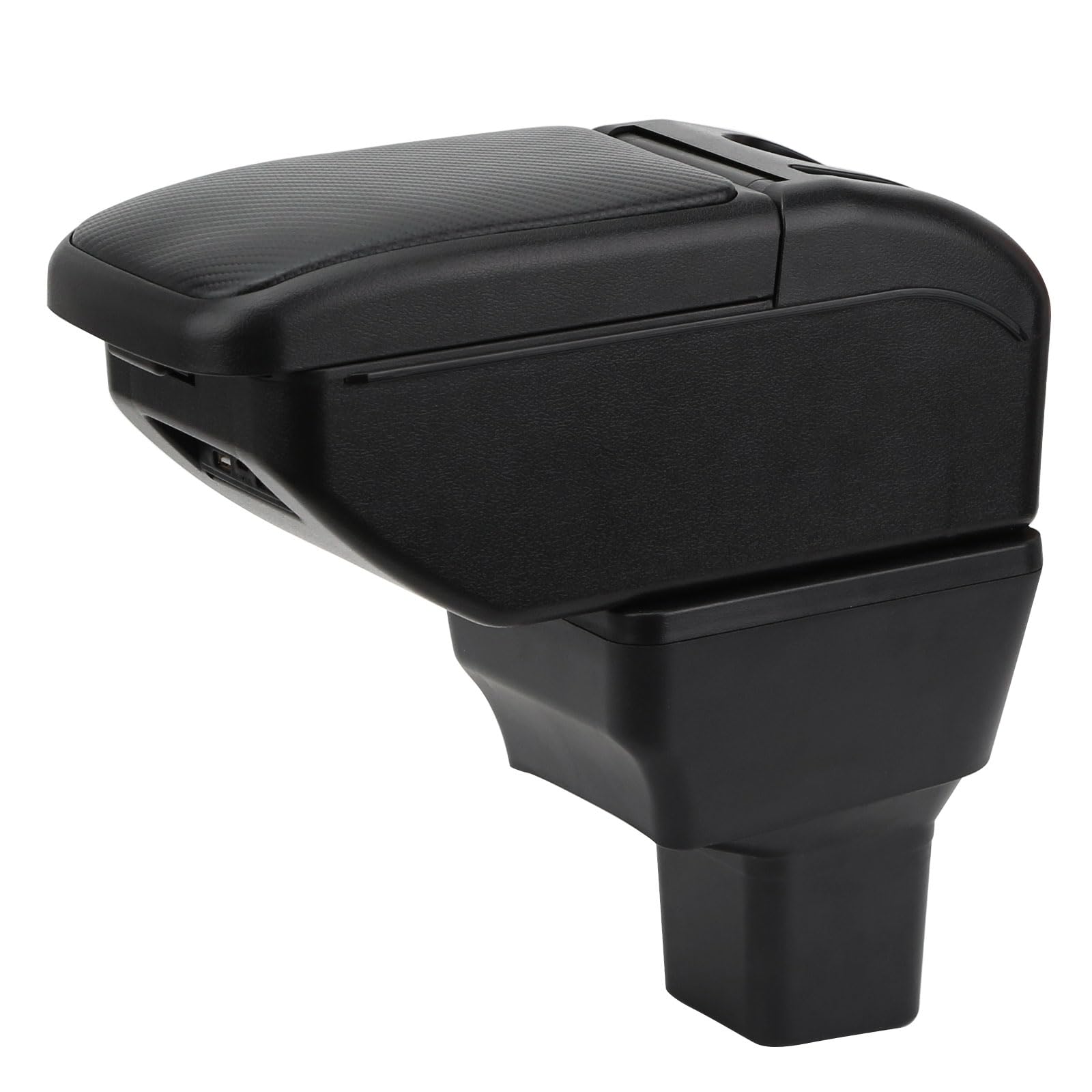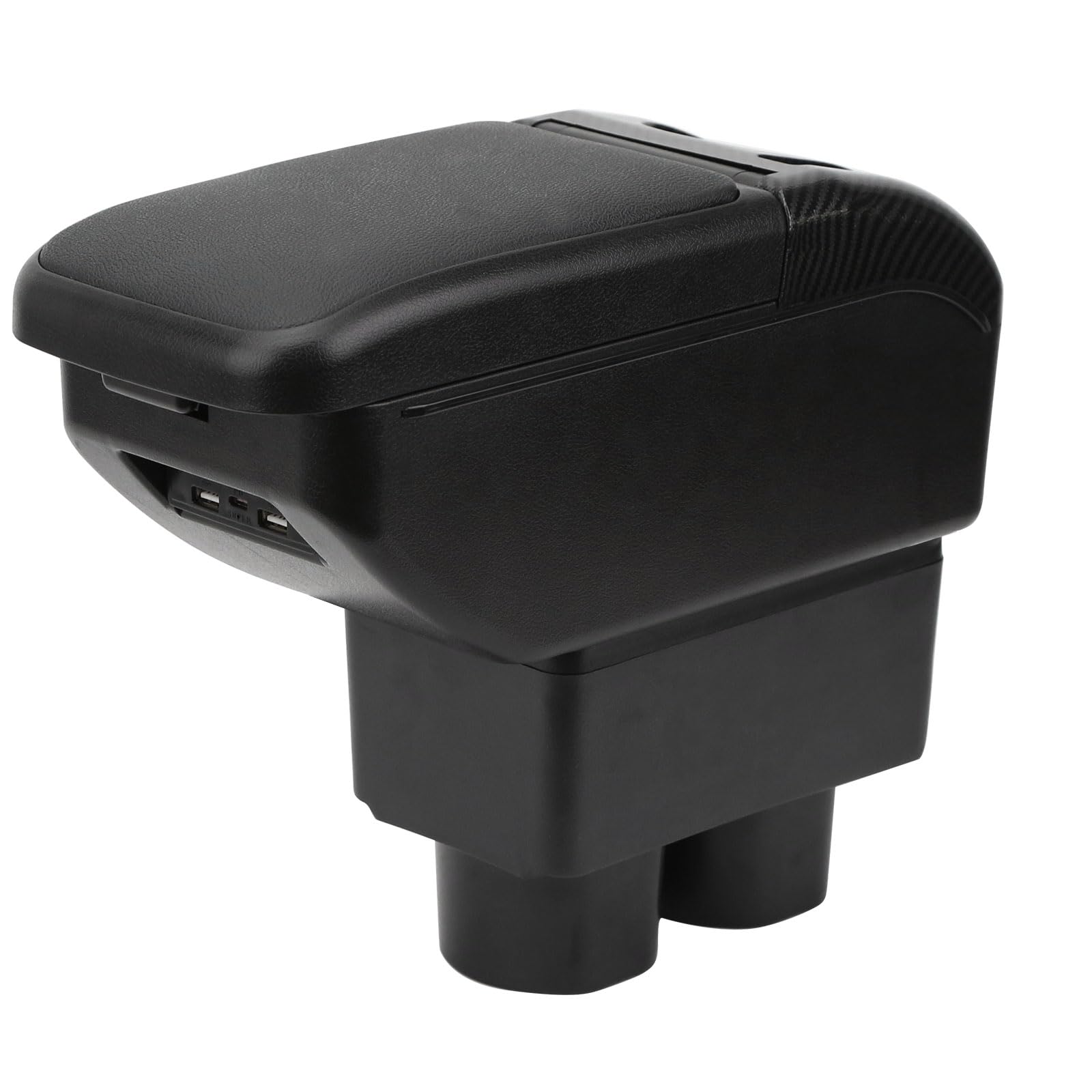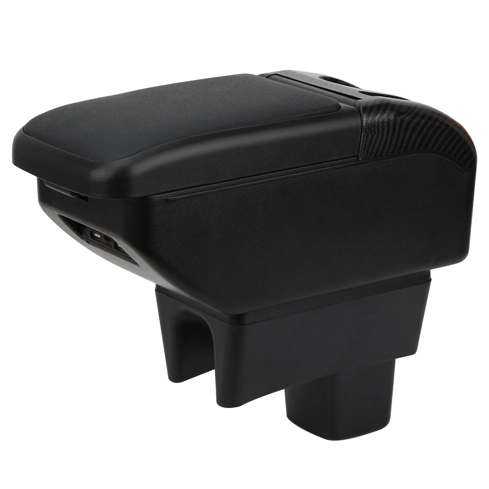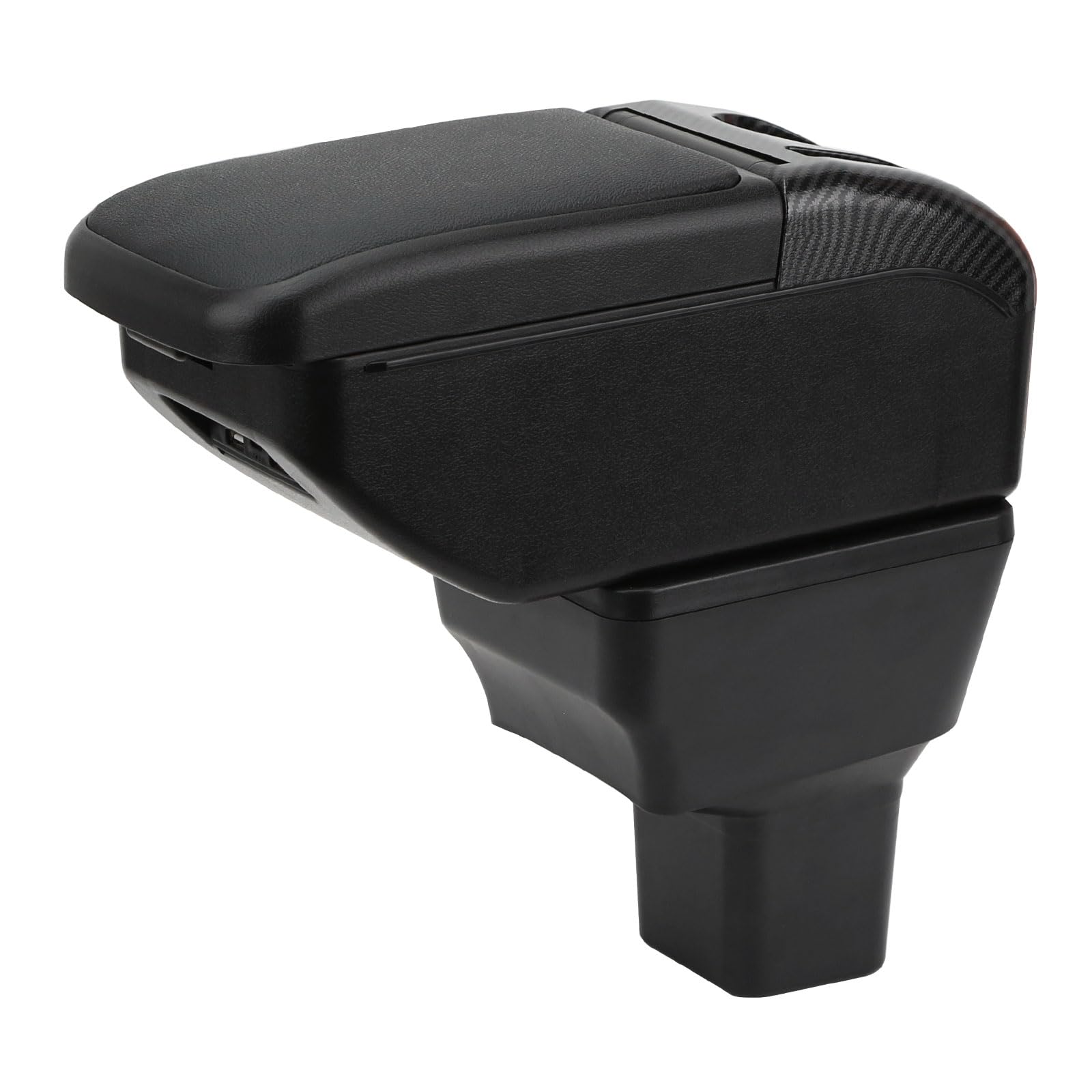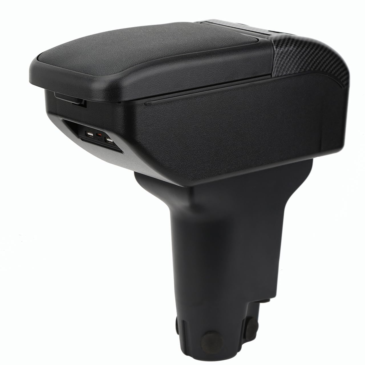 AULPHIKE Compatible with Fiat 500 Armrest 2012-2025 Car Center Console Organizer Armrests Double Layer Storage with USB(Carbon Fiber Style)