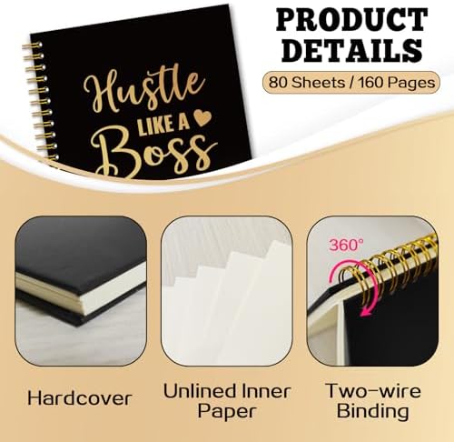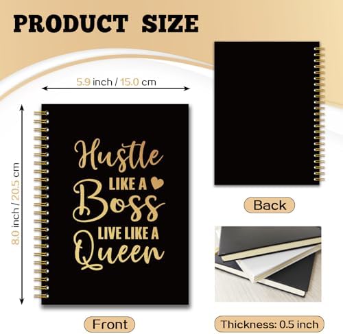 YAZMEEN Boss Lady Black Gold Spiral Notebook(160 Pages) Hustle Like A Boss Live Like A Queen Blank Hardcover Notebook Boss Appreciation Gift Funny Motivational Gift for Women Boss Entrepreneur Friend