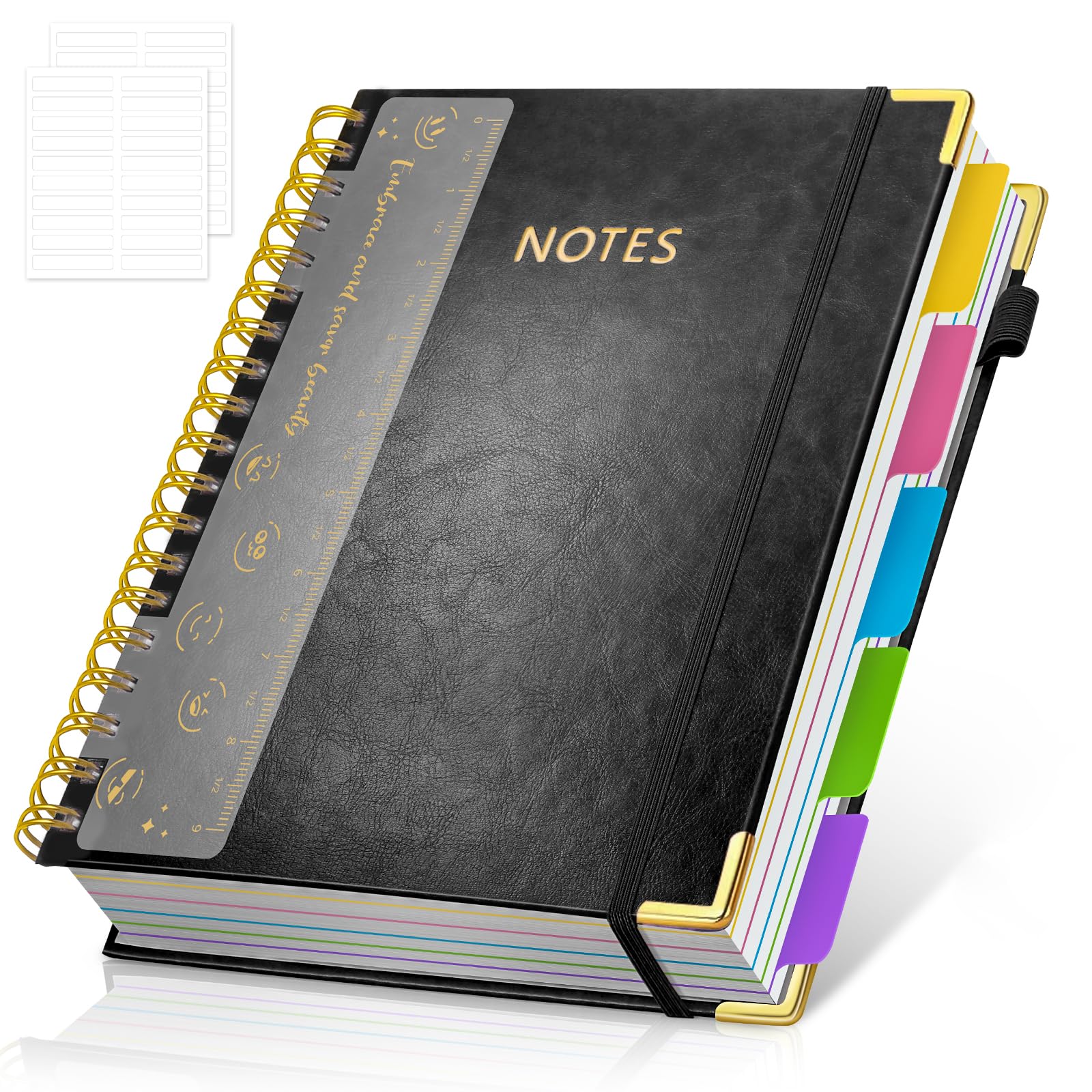 - Practical Design: Our notebooks are bound with double spiral coils, can be folded 360° freely without creases, and the pages can be easily torn off without falling apart. The unique design and color scheme on the black hard cover add a personalized touch to your note-taking experience and make your notebook no longer boring